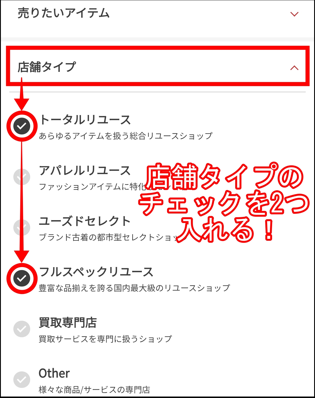 下記はセカンドストリートの店舗とオンラインショップ(宅配買取)に、