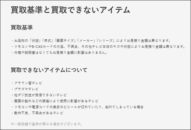 製造が11年以上前のテレビは買取不可と公式サイトにも記載されていました。
