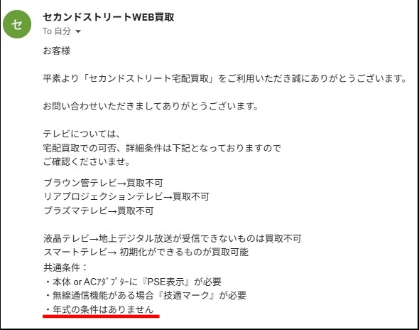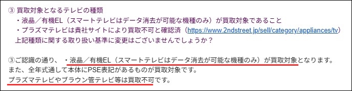 今回の調査で、セカンドストリートでは10年以上前(正確には11年以上前)のテレビも買取対象になっていることがわかりました。