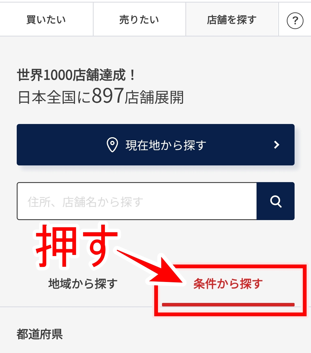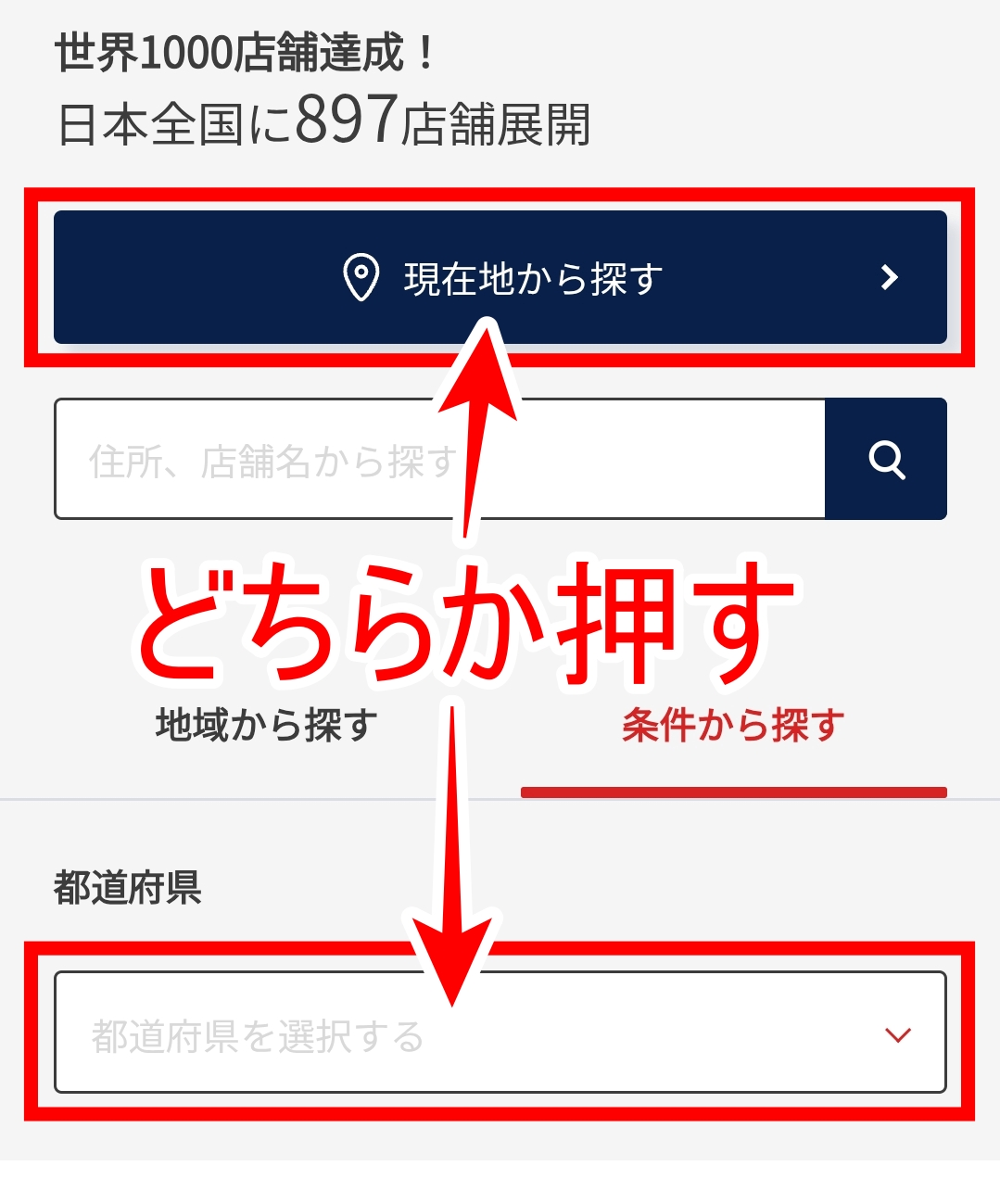 ③ 必要に応じて「都道府県」を選択します。(「現在地から探す」ボタンでもOK)