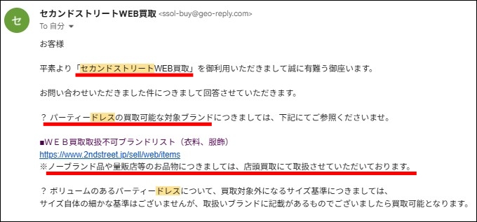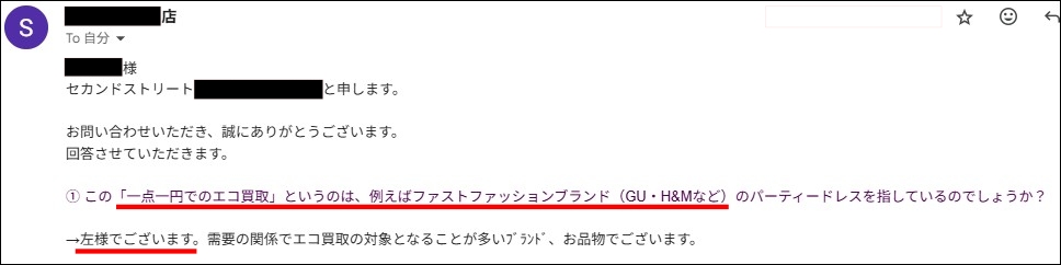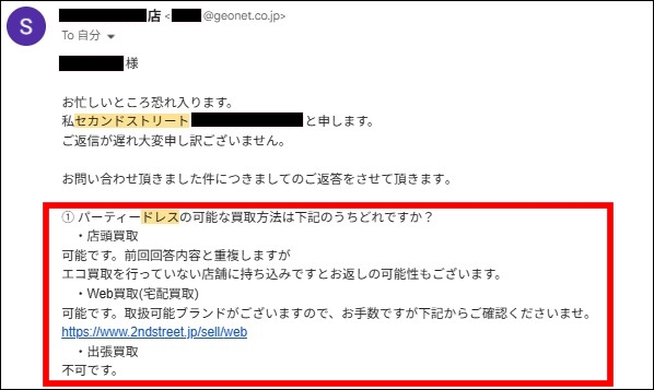 実際にセカストの店舗(店頭買取)とWEB店(宅配買取)についてメールで問い合わせた内容です。